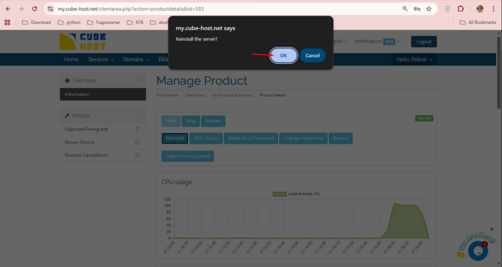 Крок 1: Відкрийте сторінку управління VPS