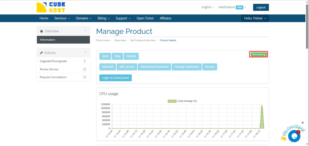 Під час інсталяції статус сервера зміниться на: Переінсталяція