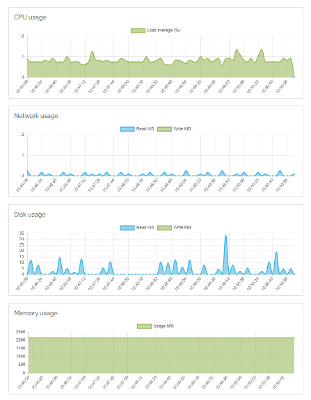 На сторінці «Управління продуктом» відображаються графіки використання ресурсів сервера: